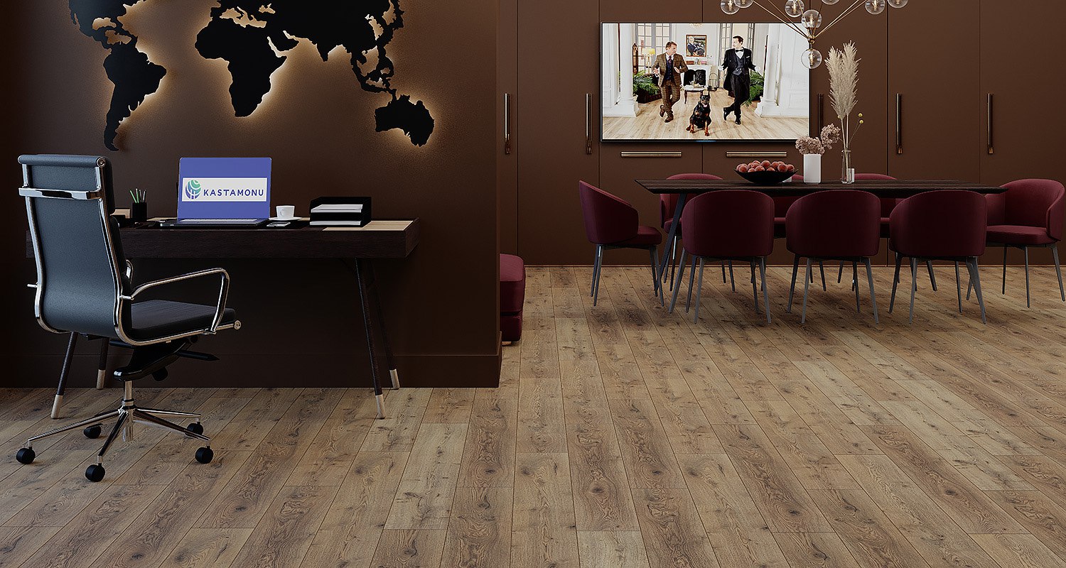 Ламинат — отличный выбор для квартир, офисов, кафе, магазинов. У нас большой выбор декоров: дуб, орех, серый бетон, елочка. Всё в наличии, с бесплатной доставкой по Алматы и бесплатным дизайн-проектом.